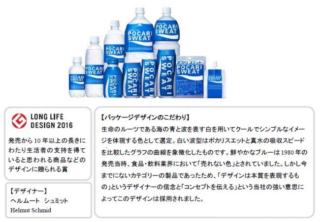 大塚製薬株式会社(本社:東京都、代表取締役社長:樋口達夫)は、この度、「ポカリスエット」のデザインにおいて「グッドデザイン・ロングライフデザイン賞2016」を公益財団法人日本デザイン振興会より受賞しました。