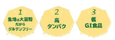 ・小麦粉を一切使わず、栄養豊富なまるごと大豆の生地で焼き上げた大豆バー ・プレーンスコーン風のしっとりとした食感に、粗びき大豆がアクセント ・ほんのりした甘さと芳醇な味わい ・高タンパクの低GI食品、グルテンフリー(米国FDA基準) |