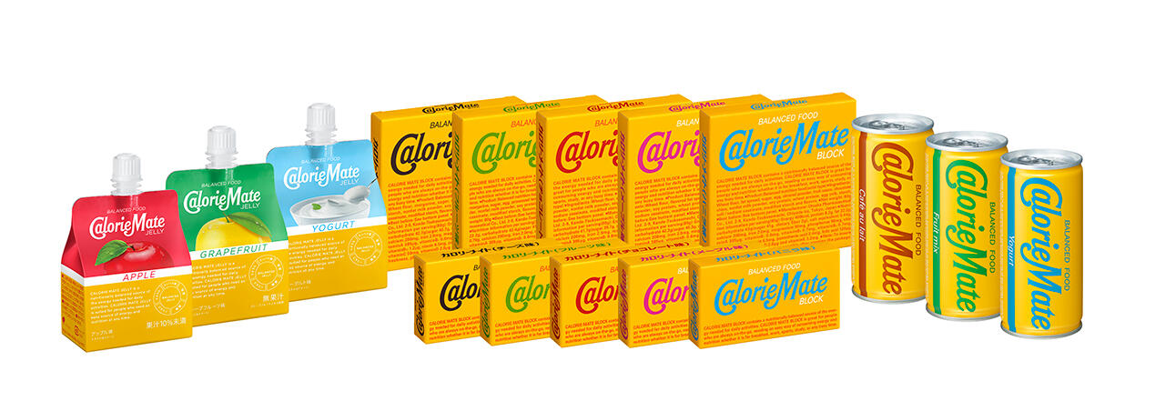 1983年に誕生したカロリーメイトは、5大栄養素(タンパク質、脂質、糖質、ビタミン、ミネラル)をバランスよく含み、身体に必要な栄養素を手軽に摂れる「バランス栄養食」です。日本初の栄養調整食品として発売し、新たなカテゴリーを築きました。現在はブロックタイプ、リキッドタイプ、ゼリータイプをラインアップし、幅広い世代の方々に、朝食やスポーツ時、勉強・仕事中など様々なシーンで利用されています。