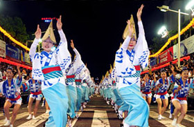 The Otsuka Ren, featuring over 100 employees from Otsuka Pharmaceutical, is continuing the 400-year tradition of the Awa Odori (Awa Dance), part of our connection with the Tokushima area that is home to our company.
