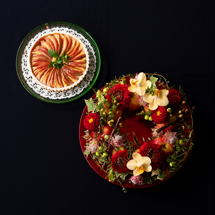 リノ:今日はアップルパイを焼いてみました!アレンジメントを愛でながら、いただきましょう。