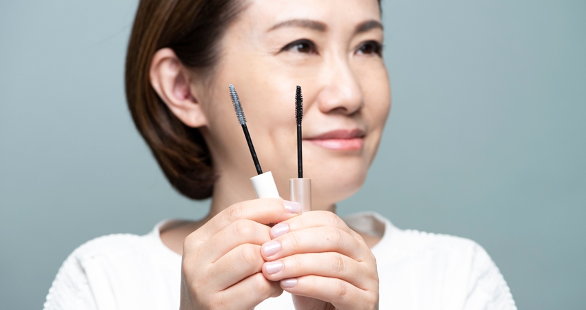 加齢とともに顔立ちに変化が現れるとお伝えしましたが、ゆらぎ世代の目元は「まつ毛老け」が進んでいます。ホルモンのバランスが変わることで、まつ毛は本数が減り、毛の1本1本が細く変化。毛周期も長くなっていますから、ビューラーで引っ張ったり、ごしごしとクレンジングしたりして抜けたまつ毛は、なかなか生えてきません。「昔はもっとふさふさしていたのに……」とがっくりせずに、正しいアイメイクでカバーしていきましょう。