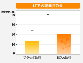 そこで、持久性運動能力の指標である、乳酸性作業閾値(LT値)に着目し、摂取したBCAAによって高まるのではないかという仮説を検証しました。