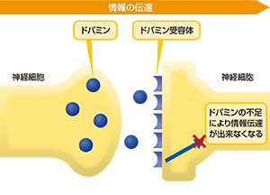 ドパミン神経細胞の障害により症状が現れる