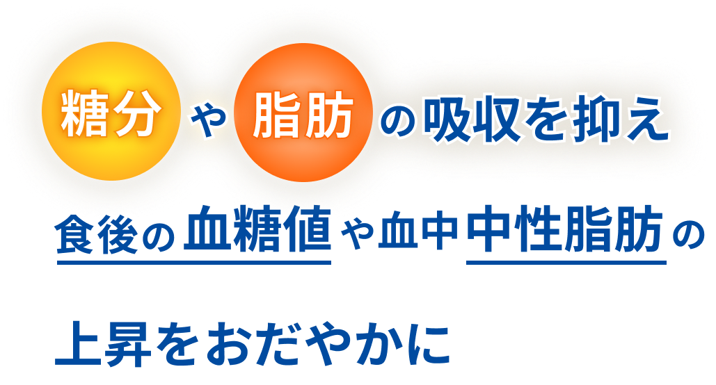 本製品は食物繊維(難消化性デキストリン)の働きで、糖分や脂肪の吸収を抑えることにより、食後の血糖値や血中中性脂肪の上昇をおだやかにします。食後の血糖値が気になる方や脂肪の多い食事を摂りがちな方の食生活の改善に役立ちます。