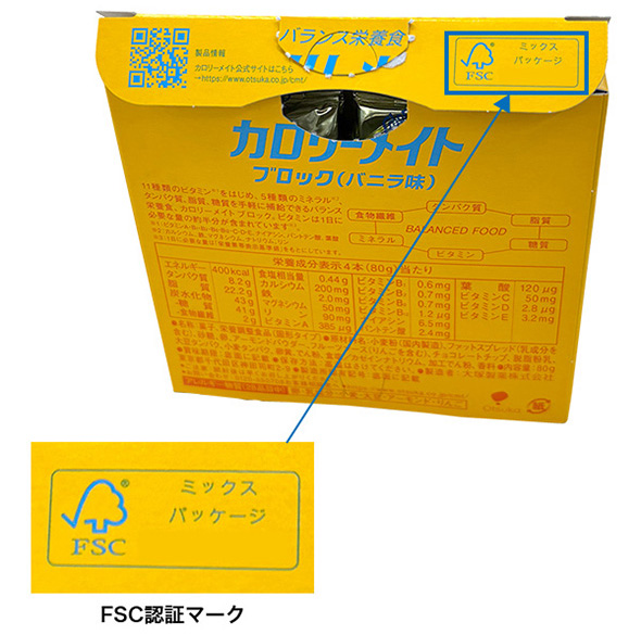 また、カロリーメイトブロック、エクエル、トコエルの包装箱、飲料の一部の外装にFSC認証紙を採用しています。製品の包装材も、紙調達ガイドラインに基づいたサステナブルな紙の採用を順次拡大してまいります。