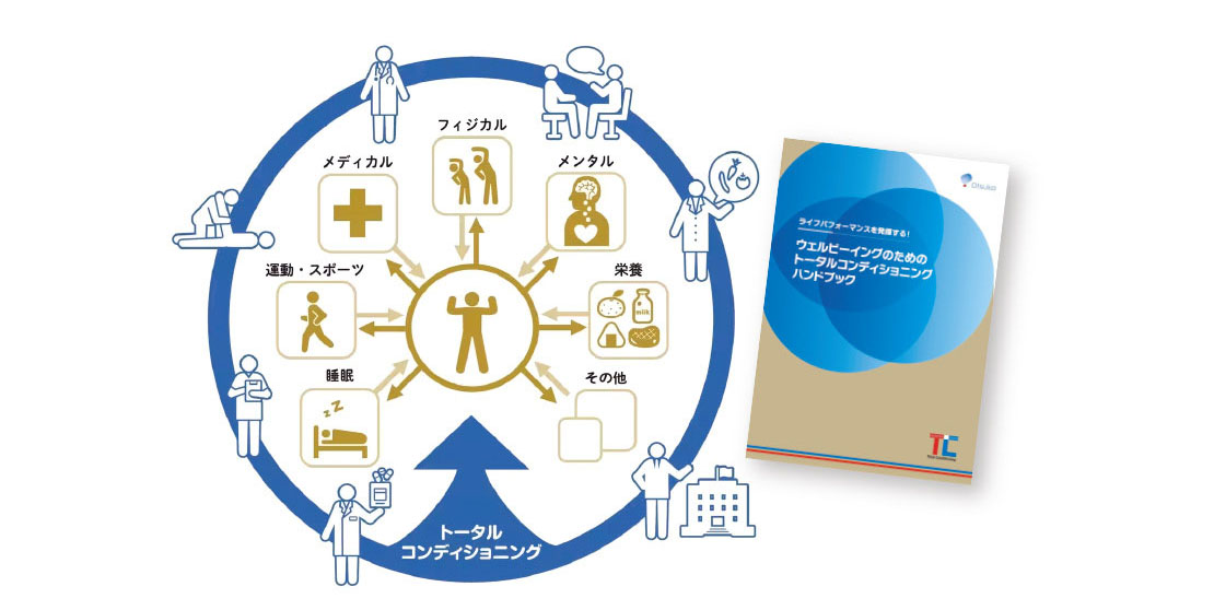 日常生活のパフォーマンス向上に重要なコンディショニングについて解説する「ウェルビーイングのためのトータルコンディショニングハンドブック」を制作しました。この冊子は、日本スポーツ振興センターと大塚ホールディングスの共同プロジェクトの一環で、大塚製薬が作成したものです。高いレベルでの競技パフォーマンスである「ハイパフォーマンス」だけでなく、日常生活における「ライフパフォーマンス」にも焦点を当て、トータルコンディショニングで人々のセルフコンディショニングを後押しします。