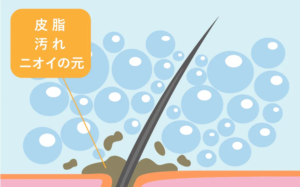 ニオイやかゆみの原因となる頭皮・毛髪の皮脂や汚れを